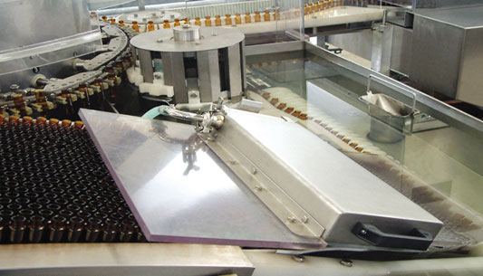 This line is made up of  Model QCK80A vertical type ultrasonic washing machine ,Model ASMRZ620/38 hot air circulation drying and sterilizing machine ,Model DGF16/24 filling and capping machine ,which is divided into washing area ,drying and sterilizing area, and filling and sealing area. The complete line can manufacture singly and combines with other machine and can complete the following procedures: watering ,ultrasonic washing ,clamping bottle with manipulator, turning ,flushing water ,air charging ,preheating ,drying and sterilizing ,cooling ,filling ,cap-arranging ,cap-feeding ,capping.