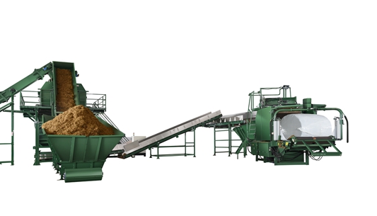 青貯飼料稱重配料→攪拌混合→自動進料→壓縮成捆→預包膜→物料輸送→最終包膜→成品輸出